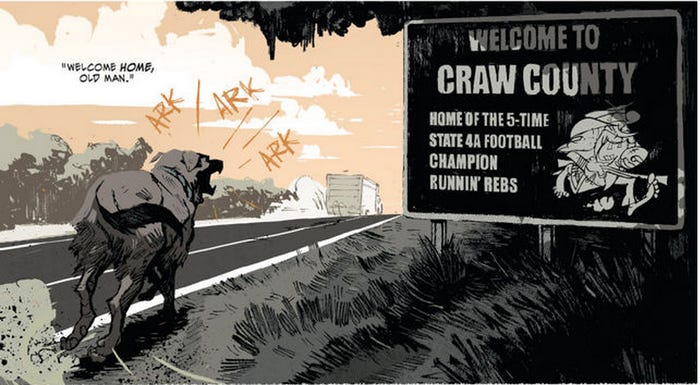 In dit eerste deel van een nieuwe stripalbumserie keert Earl Tubb terug naar zijn roots. Eigenlijk keert hij enkel terug naar zijn geboortestad Craw County om zijn ouderlijk huis leeg te halen. Craw County is een plek die hij als jongeman ontvluchtte om voorgoed van zijn vader verlost te zijn.