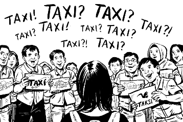 De talentvolle illustrator Aimée de Jongh (De Terugkeer van de Wespendief, Bloesems in de Herfst) deelt in haar nieuwe album Taxi! een aantal van haar ervaringen met taxichauffeurs. Per taxi liet ze zich vervoeren door Jakarta, Parijs, Los Angeles en Washington. De waargebeurde verhalen zijn vrij simpel, menselijk en herkenbaar en komen juist daardoor erg geloofwaardig over. De vier losse verhalen wisselen elkaar telkens op slimme wijze af, waardoor het geen moment saai wordt. Spring naast Aimée de Jongh in de taxi en reis mee door deze unieke wereldsteden.